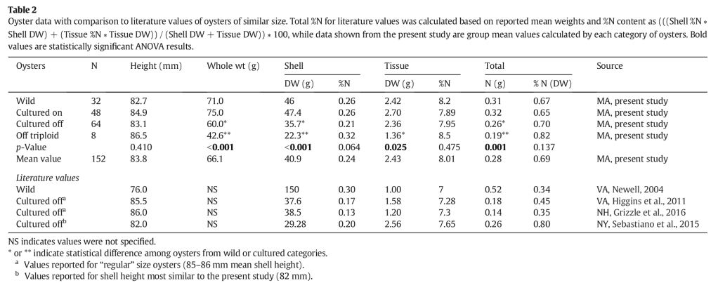 Welllfeet’s shellfish landings are measured in wet weight. It is necessary to covert wet weight to dry weight. There is a difference between wild vs off bottom. I’m using the cultured off the bottom as the representative sample for cultured oysters. On bottom cultured weigh more and triploids weigh less and each has a different ratio of dw vrs ww. Cultured oysters have a great deal of variability due to how they are grown by the growers, the local conditions, diploids vrs triploids. There data for the wieght of Wellfleet’s oyster landing that are triploids.
