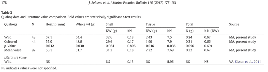 There is little difference in the wet weight to dry weight between cultured vrs wild quahogs.
