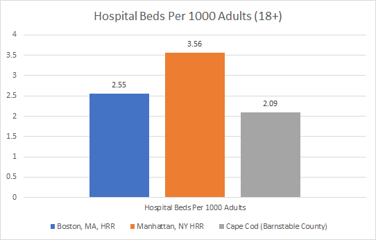 2 thoughts on “Comparative hospital capacity of Cape Cod and that of common sources of leisure travelers.